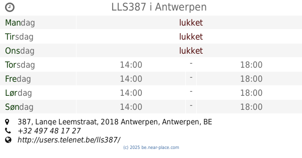 | Søndag | lukket | |||||